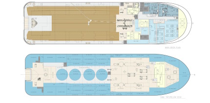 With 80-ton bollard pull, DP2 and a clear deck space of 435 m2, the A802 is ideally sized to tow the latest jack-up drilling rig. The propeller diameter is optimised for continuous 80-ton bollard pull with 6,000 bhp, produced by fuel-efficient, medium-speed engines.
